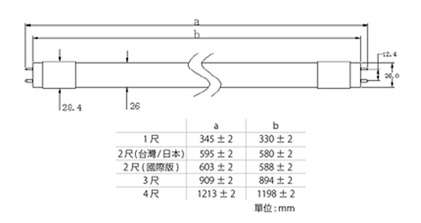 2尺 | 長度580mm | 9W | 940lm/白光1000lm | 3000K/4000K/6000K |
