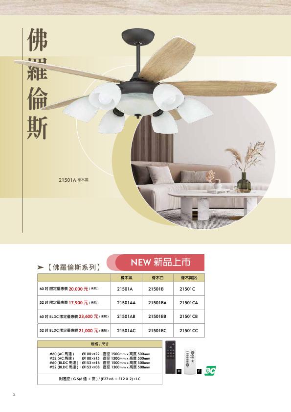 佛羅倫斯 52" 60" 顏色 橡木黑、橡木白、橡木霧鋁 馬達規格 AC馬達/ BLDC直流無刷 燈具配置 E27*6 +E12*2 +IC 附遙控 電壓 110V ( 220V 需要備註 訂購前請確認電壓 ) 適用面積 52" 3~4坪 60" 6~8坪 *附遙控器
