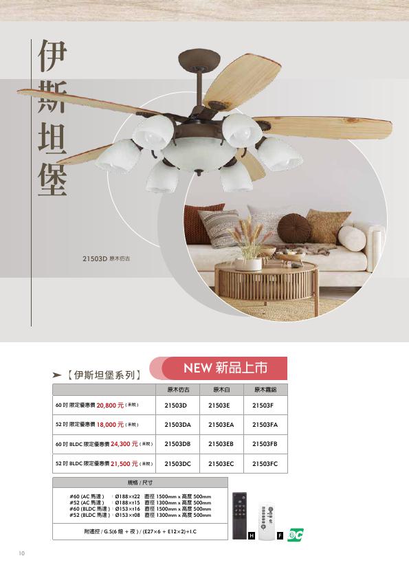 伊斯坦堡 52" 60" 顏色 原木仿色、原木白、原木霧鋁 馬達規格 AC馬達/ BLDC直流無刷 燈具配置 E27*6 +E12*2 +IC 附遙控 電壓 110V ( 220V 需要備註 訂購前請確認電壓 ) 適用面積 52" 3~4坪 60" 6~8坪 *附遙控器