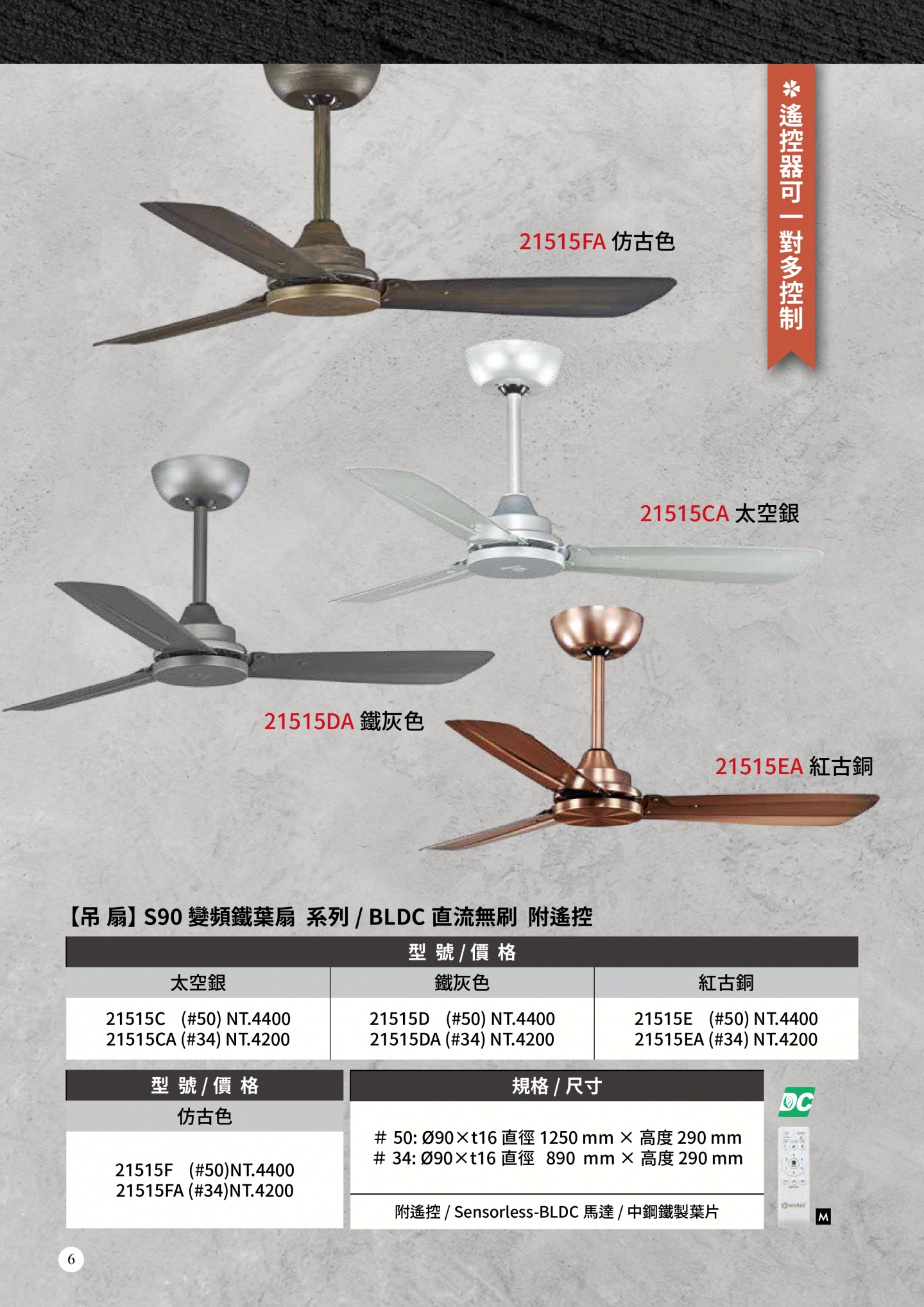 DC 鐵葉扇 #50 #34 顏色 太空銀、鐵灰色、紅古銅、仿古色 馬達規格 BLDC 燈具配置 無燈具 電壓 110V ( 220V 需要備註 訂購前請確認電壓 ) 適用面積 50" 3~4坪 34" 1~2坪 *附遙控器
