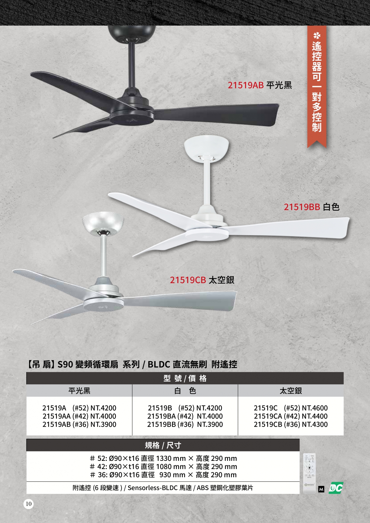 DC 鐵葉扇 #52 #42 #36 顏色 平光黑、白色、太空銀 馬達規格 BLDC 燈具配置 無燈具 電壓 110V ( 220V 需要備註 訂購前請確認電壓 ) 適用面積 52" 3~4坪 42" 2~3坪 36" 1~2坪 *附遙控器
