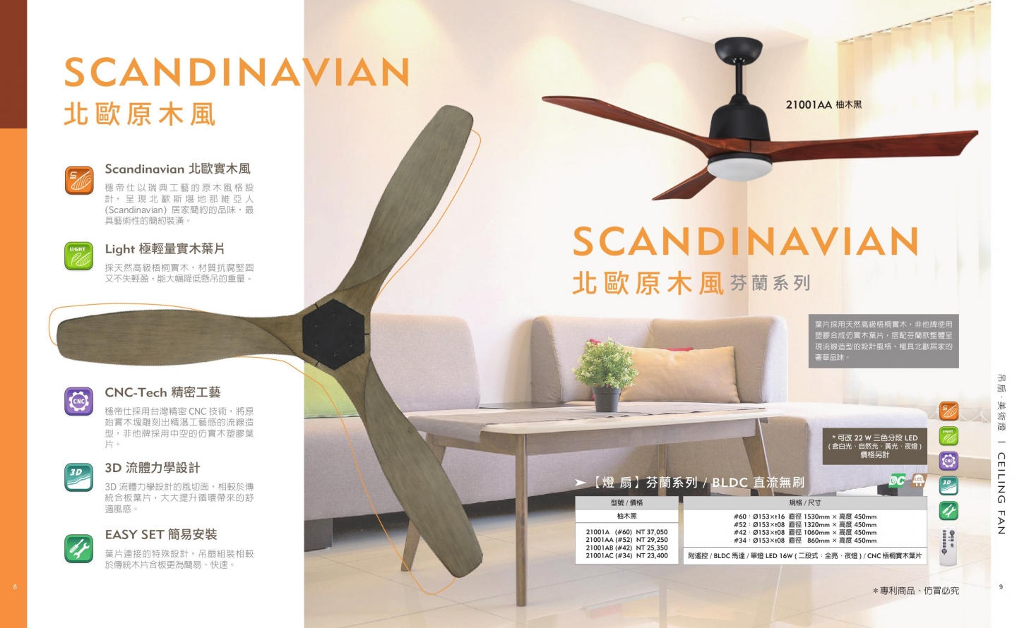 芬蘭系列/ BLDC 直流無刷 #60 #52 #42 #34 顏色 柚木黑 馬達規格 BLDC 燈具配置 單燈 LED 16W 電壓 110V ( 220V 需要備註 訂購前請確認電壓 ) 適用面積 #60" 6坪 #52" 3~4坪 #42" 2~3坪 #34" 1~2坪 *附遙控器