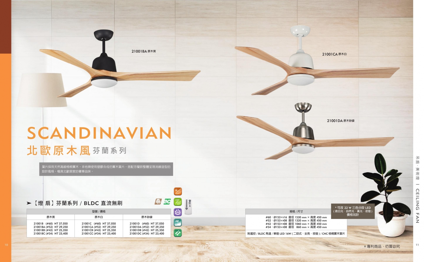 芬蘭系列/ BLDC 直流無刷 #60 #52 #42 #34 顏色 原木黑、原木白、原木沙鎳 馬達規格 BLDC 燈具配置 單燈 LED 16W 電壓 110V ( 220V 需要備註 訂購前請確認電壓 ) 適用面積 #60" 6坪 #52" 3~4坪 #42" 2~3坪 #34" 1~2坪 *附遙控器