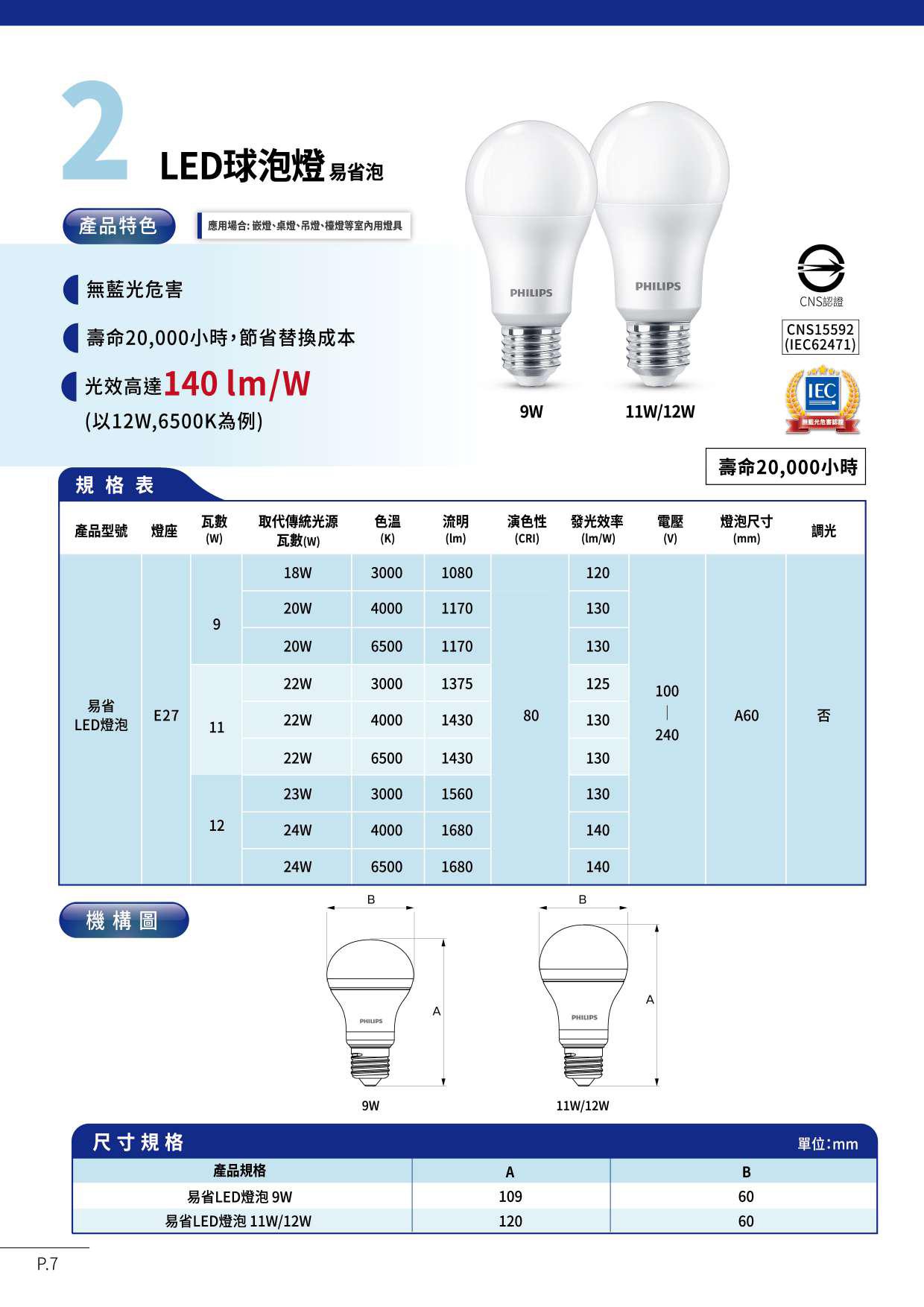 PHILIPS 飛利浦 E27 易省泡 燈泡