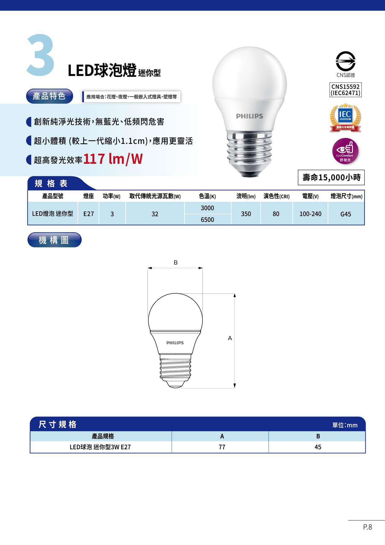 PHILIPS 飛利浦 E27 迷你球泡 燈泡