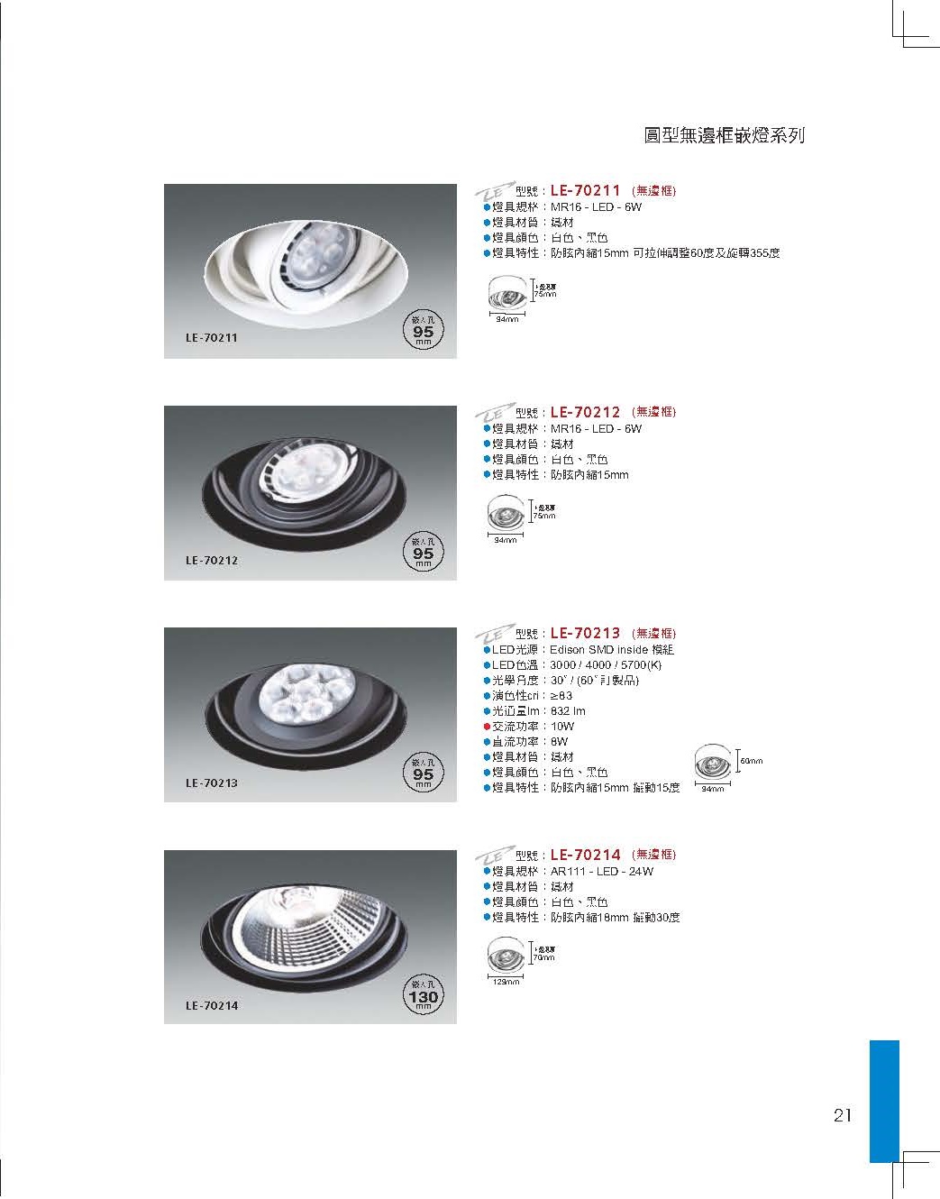 95/130mm MR16無邊框崁燈 AR111無邊框崁燈 模組崁燈