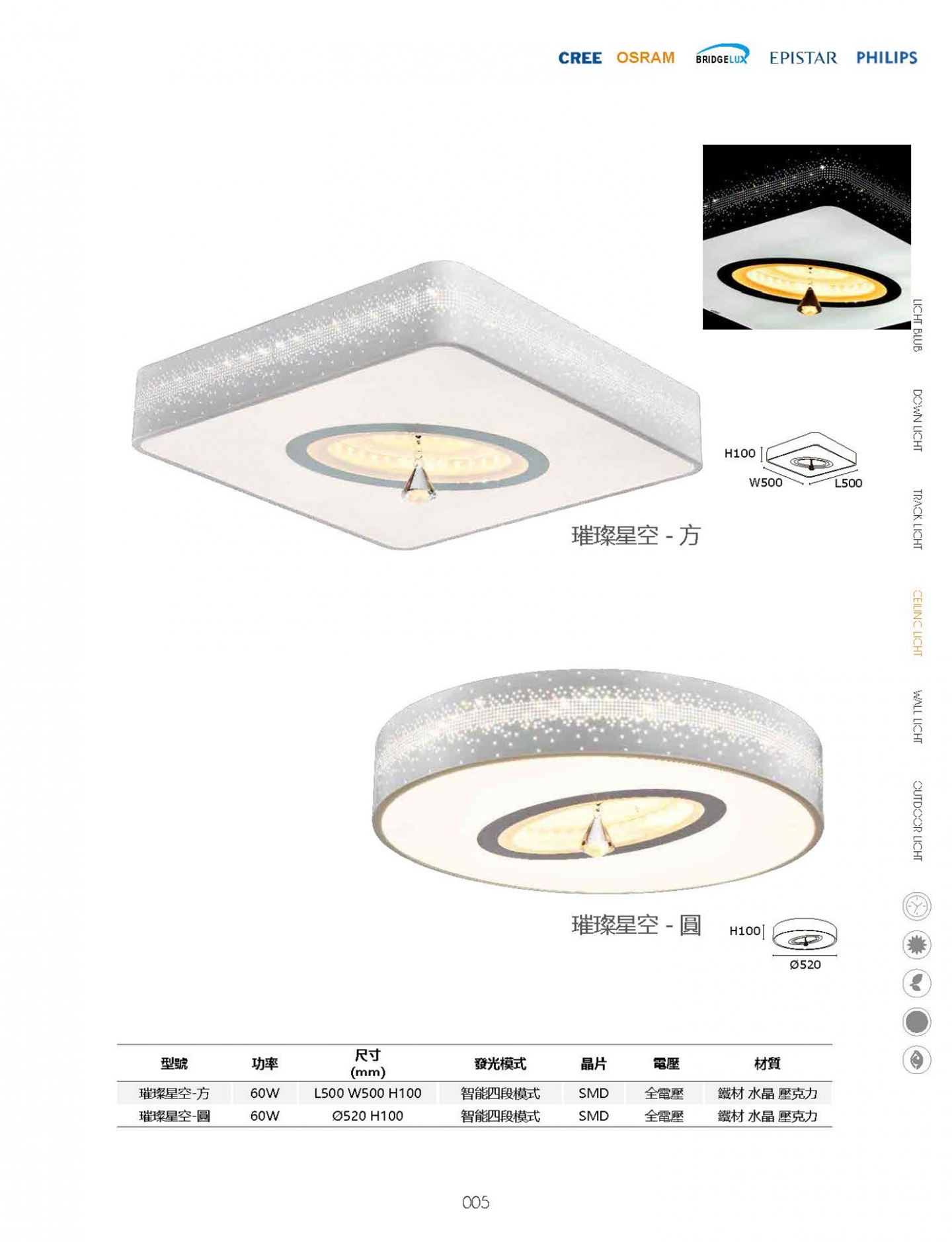 璀璨星空 方型 圓型 吸頂燈 智能四段模式