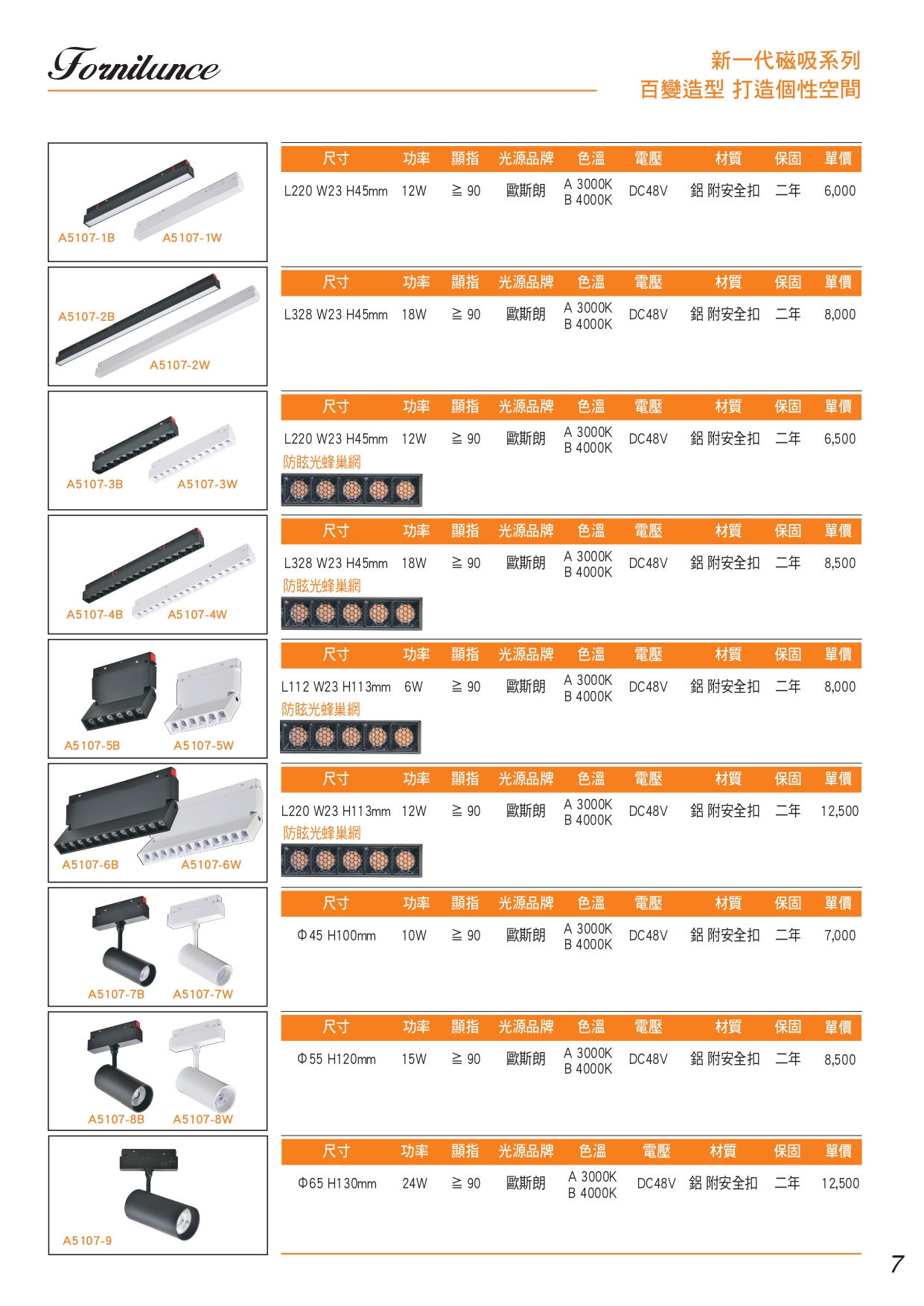 磁吸軌道燈 DC48V 保固2年