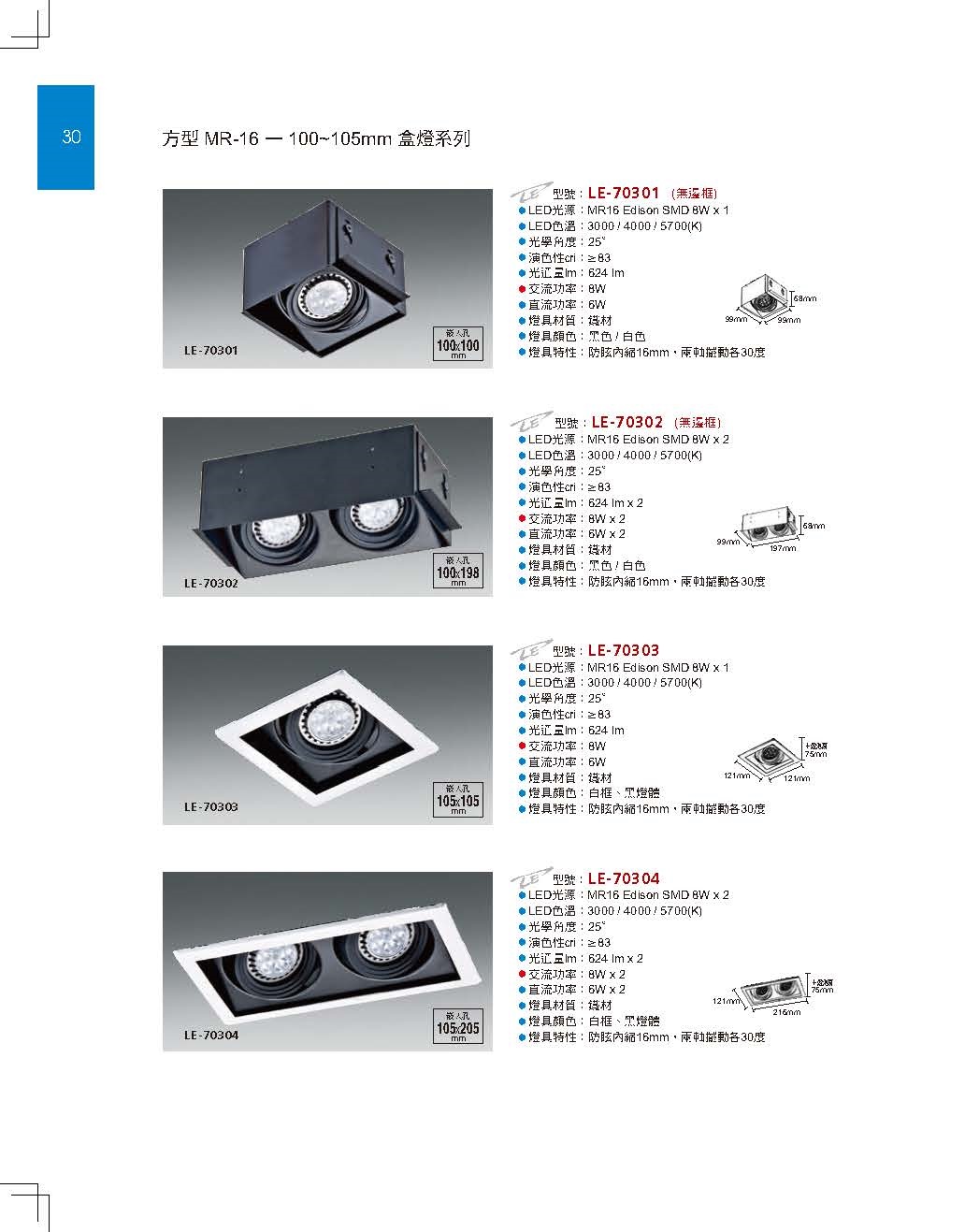 100/105mm MR16無邊框盒燈 MR16有邊框盒燈