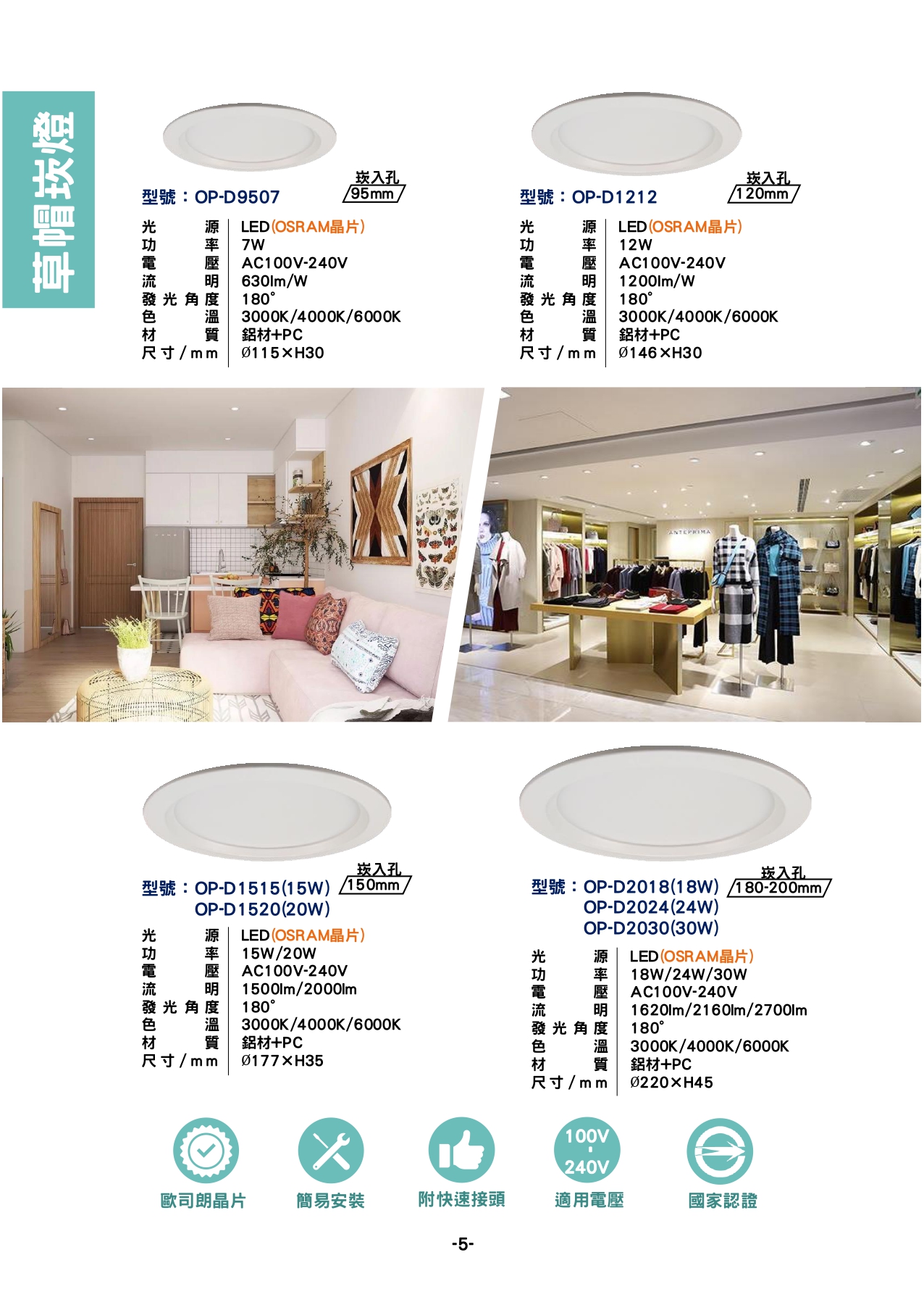 歐司朗晶片 模組崁燈 95/120/150/180/200mm 導光板崁燈 超薄崁燈 泛光崁燈