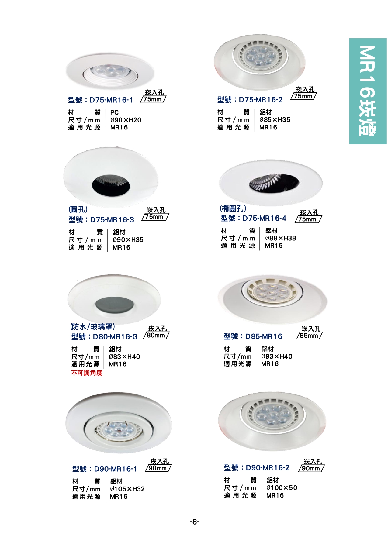 MR16崁燈 75/80/85/90mm
