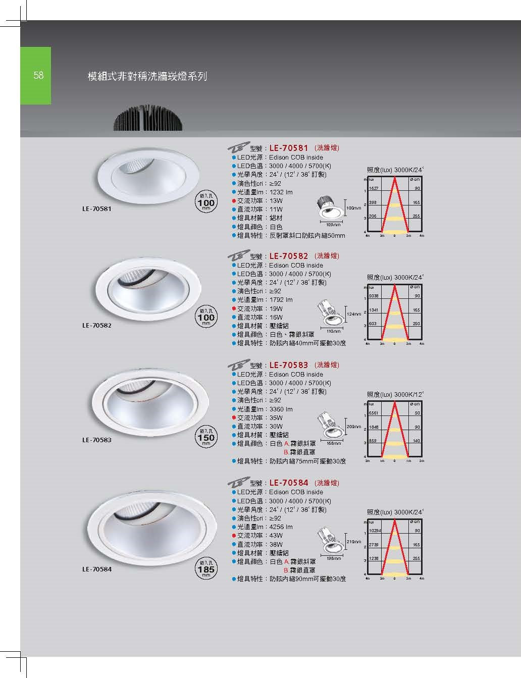 100/150/185mm 模組崁燈 洗牆崁燈 COB崁燈